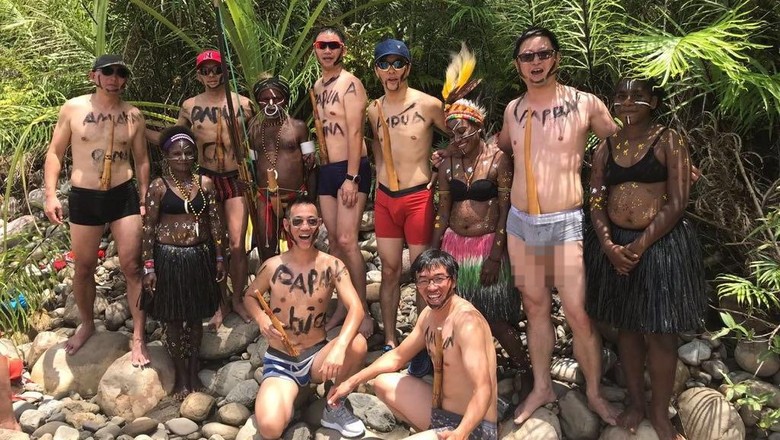 "Iya mereka mau pakai koteka, mau coba katanya. Itu lucu sekali suasananya. Mereka balasannya coba tapi tetap menggunakan celana dalam," kata Maximus sembari tertawa.